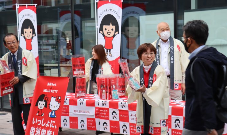 「国消国産」の理解求め青森駅でPR